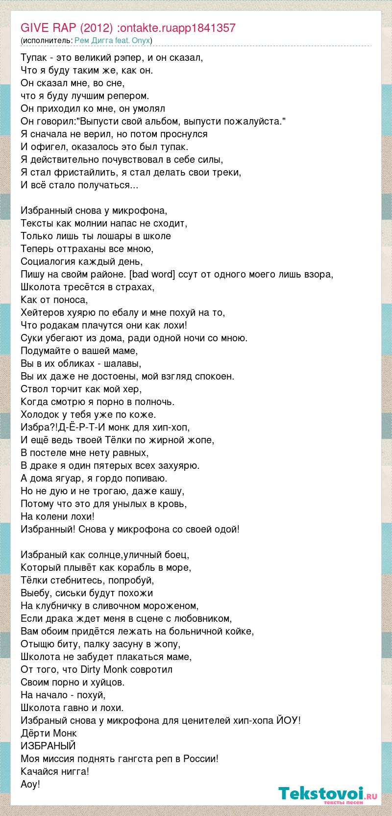 А как ты думаешь, о чем песня "GIVE RAP (2012) :ontakte.ruapp1841357" ?