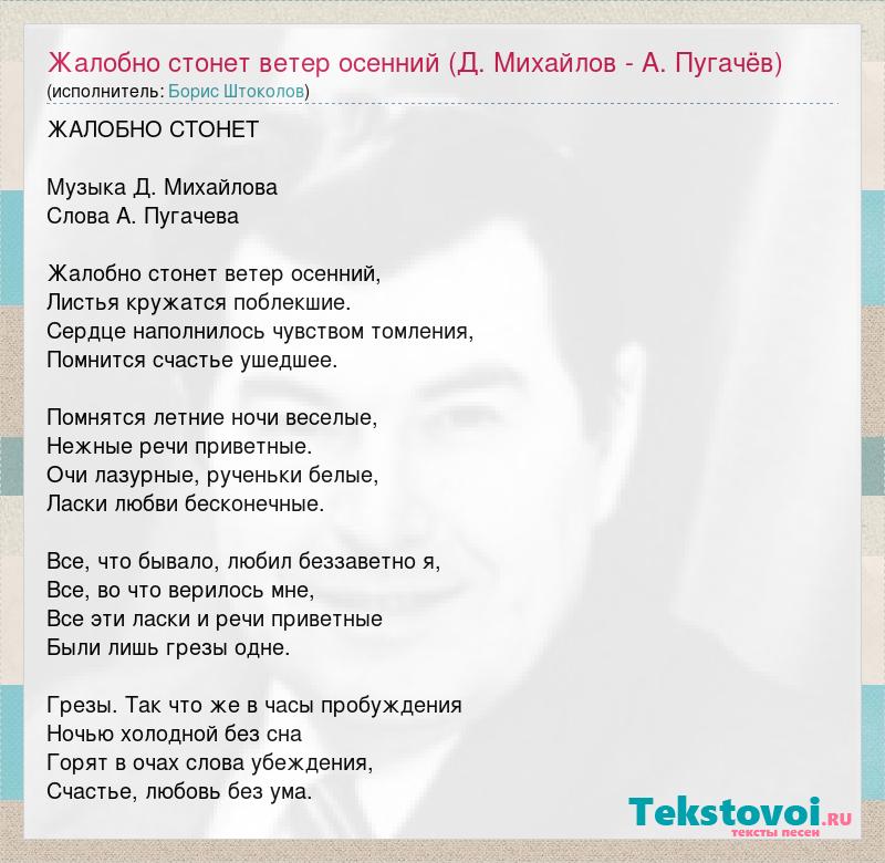 А как ты думаешь, о чем песня "Жалобно стонет ветер осенний (Д. Михайлов - А. Пугачёв)" ?