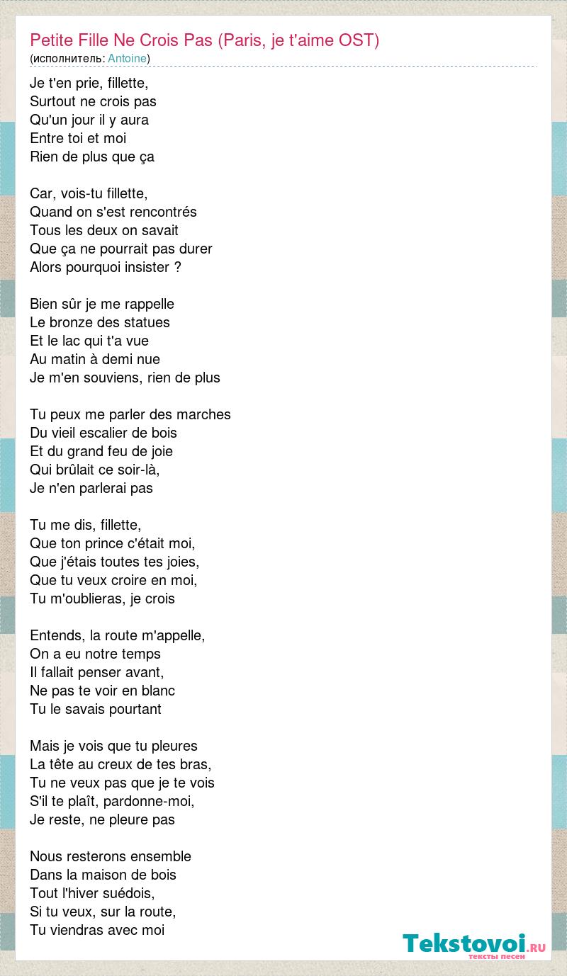 Petite Fille Ne Crois Pas (Paris, je t'aime OST)