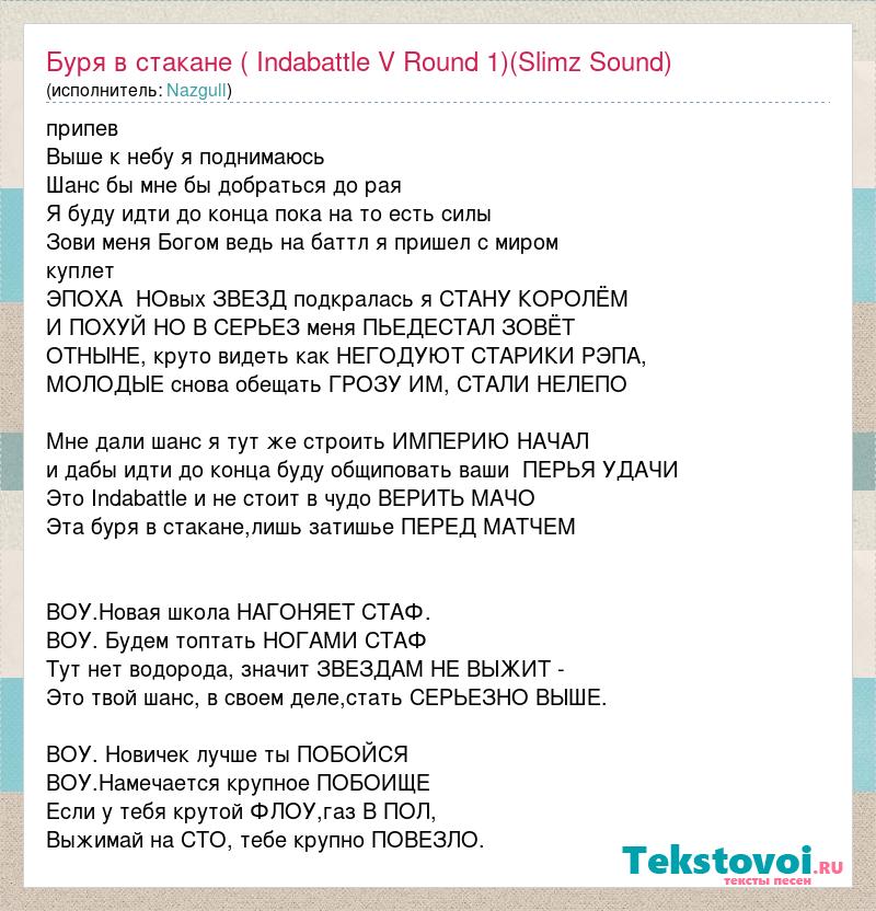 А как ты думаешь, о чем песня "Буря в стакане ( Indabattle V Round 1)(Slimz Sound)" ?