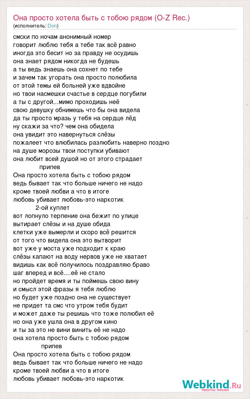 А как ты думаешь, о чем песня "Она просто хотела быть с тобою рядом (O-Z Rec.)" ?
