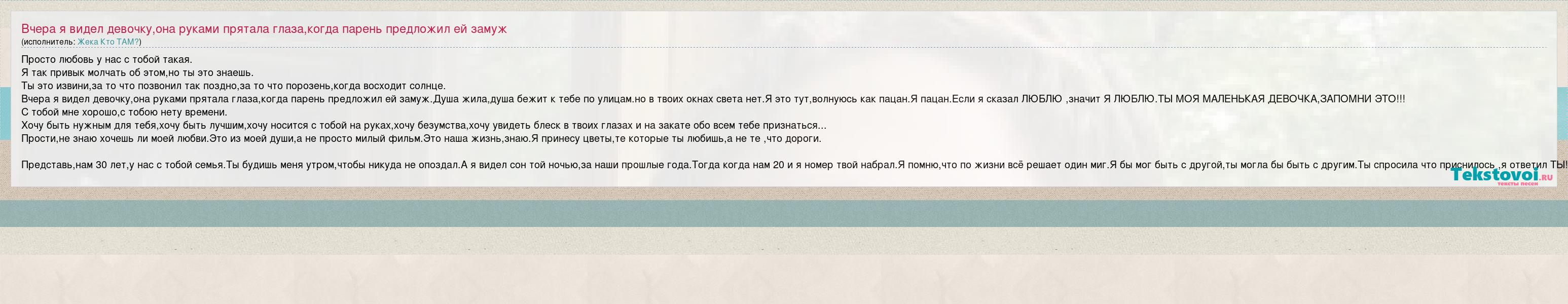 Главная→Исполнители→Жека Кто Там?→Вчера я видел девочку,она руками прятала глаза,когда парень предложил ей з