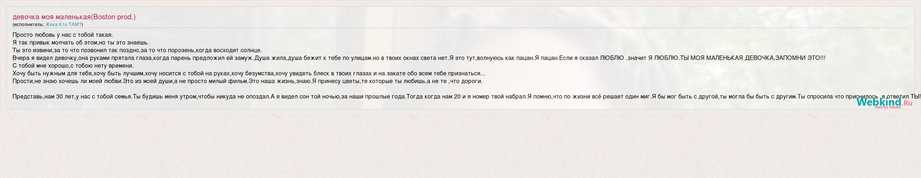 А как ты думаешь, о чем песня "Девочка моя маленькая(Boston prod.)" ?