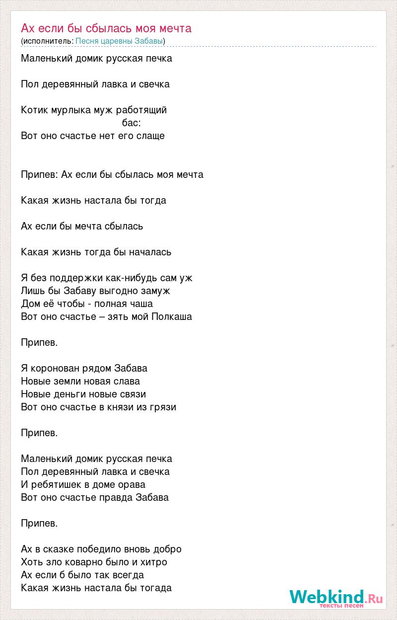 А как ты думаешь, о чем песня "Ах если бы сбылась моя мечта" ?