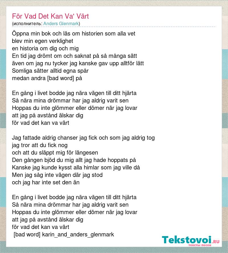 А как ты думаешь, о чем песня "För Vad Det Kan Va' Värt" ?