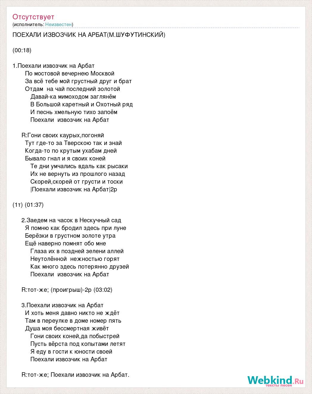 ПОЕХАЛИ ИЗВОЗЧИК НА АРБАТ(М.ШУФУТИНСКИЙ)