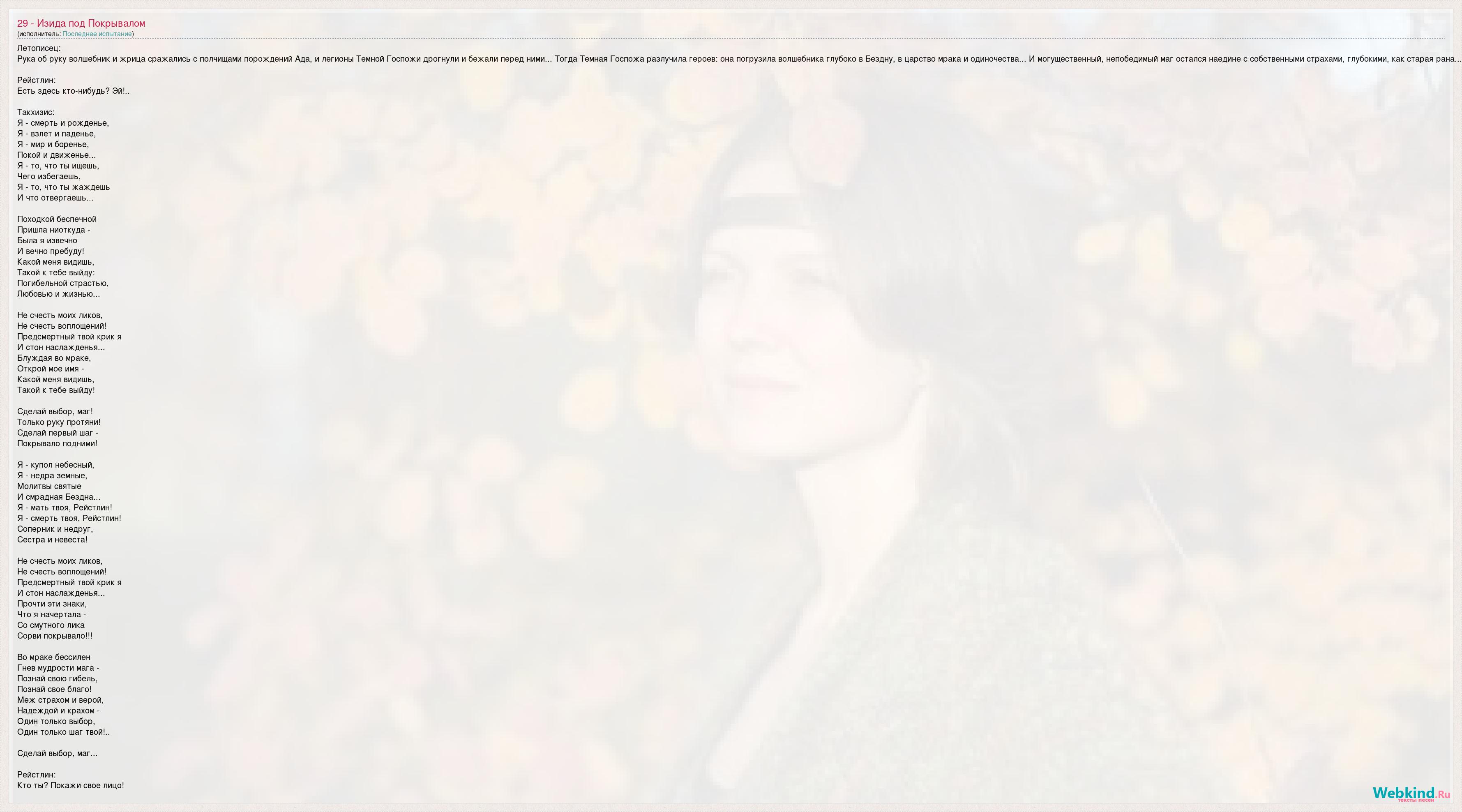 А как ты думаешь, о чем песня "29 - Изида под Покрывалом" ?