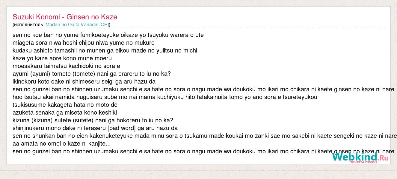 А как ты думаешь, о чем песня "Suzuki Konomi - Ginsen no Kaze" ?
