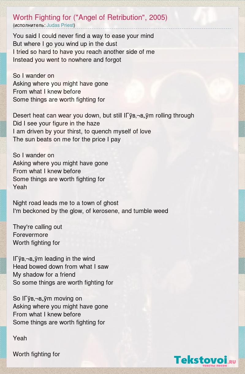 А как ты думаешь, о чем песня "Worth Fighting for ("Angel of Retribution", 2005)" ?