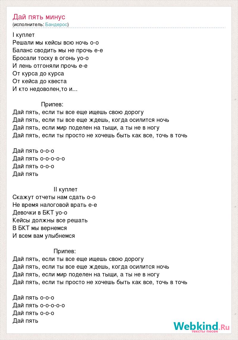 А как ты думаешь, о чем песня "Дай пять минус" ?
