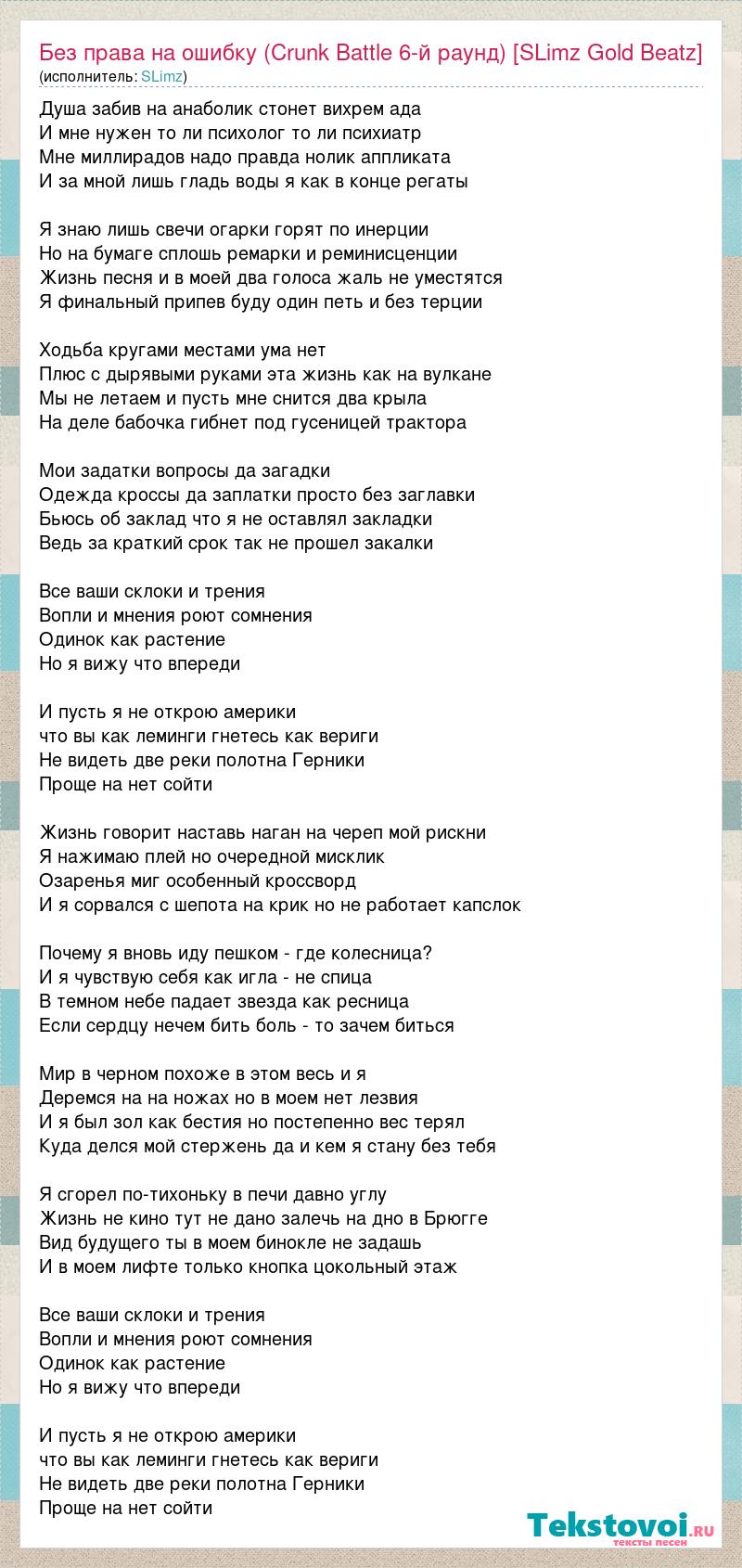 А как ты думаешь, о чем песня "Без права на ошибку (Crunk Battle 6-й раунд) [SLimz Gold Beatz]" ?