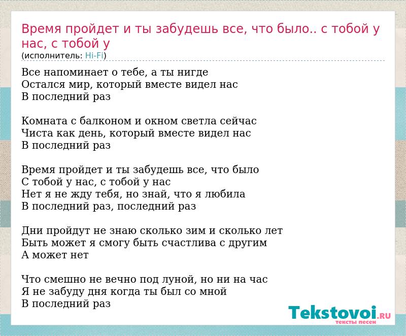 Время пройдет и ты забудешь все, что было.. с тобой у нас, с тобой у