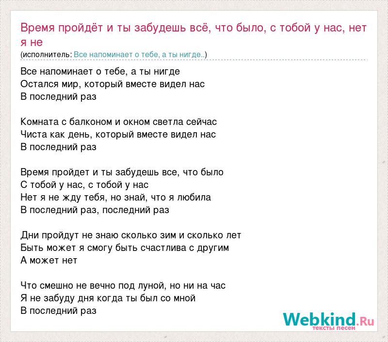 Время пройдёт и ты забудешь всё, что было, с тобой у нас, нет я не