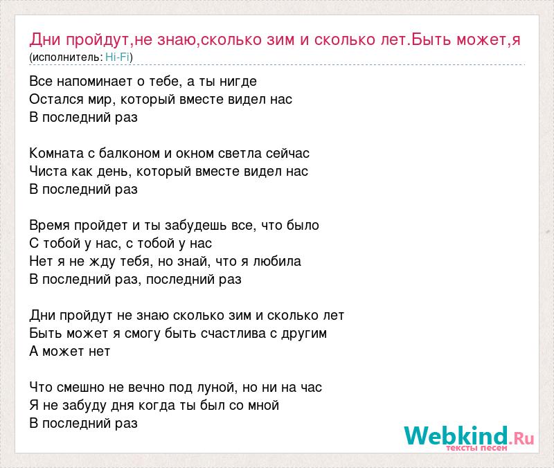 Дни пройдут,не знаю,сколько зим и сколько лет.Быть может,я