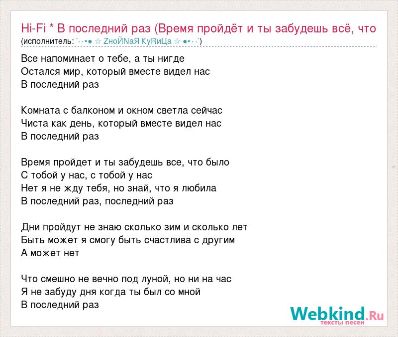 Hi-Fi * В последний раз (Время пройдёт и ты забудешь всё, что было, с т