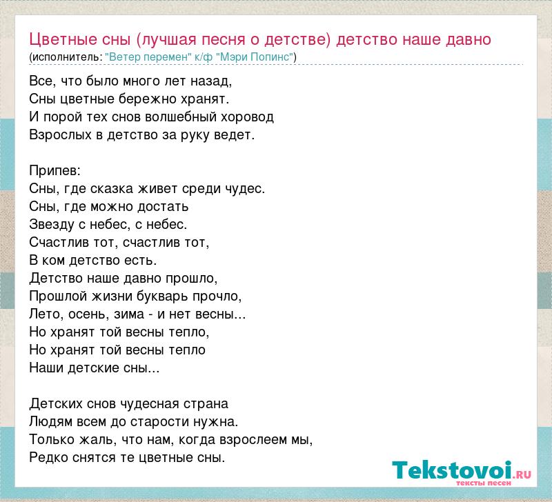Главная→Исполнители→"Ветер перемен" к/ф "Мэри Попинс"→Цветные сны (лучшая песня о детстве) детство наше давно прошло, прошлой жизни бу