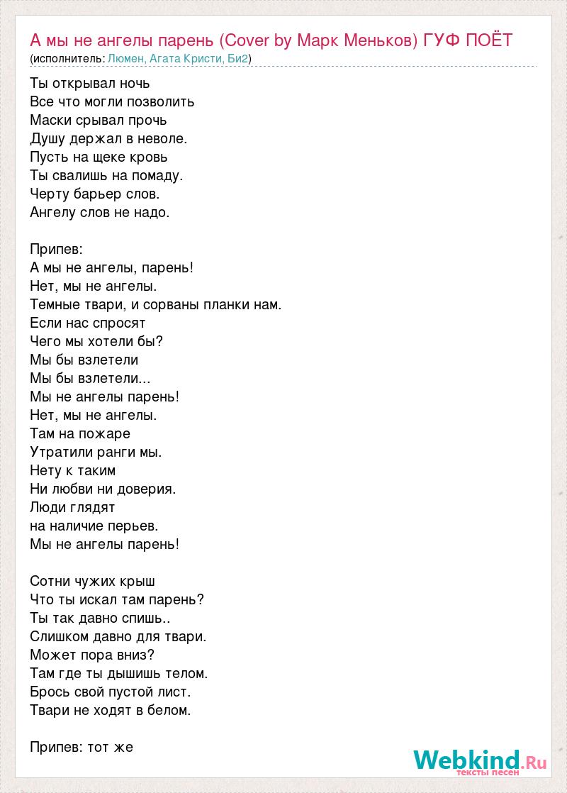 А как ты думаешь, о чем песня "А мы не ангелы парень (Cover by Марк Меньков) ГУФ ПОЁТ" ?