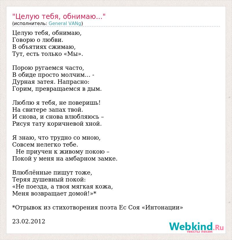 А как ты думаешь, о чем песня ""Целую тебя, обнимаю..."" ?