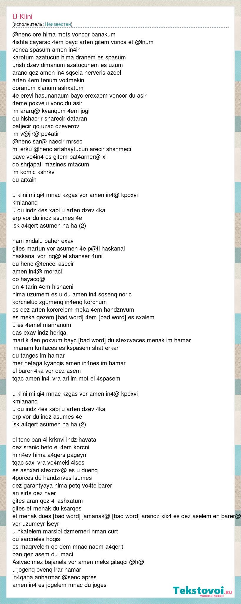 @nenc ore hima mots voncor banakum 4ishta cayarac 4em bayc arten gitem vonca et @lnum vonca spasum amen in4in karotum azatucun hima dranem es spasum urish dzev dimanum azatucunem es uzum aranc qez amen in4 sqsela nerveris azdel arten 4em tenum vo4mekin qoranum xlanum ashxatum 4e erevi hasunanaum bayc erexaem voncor du asir 4eme poxvelu vonc du asir im ararq@ kyanqum 4em jogi du hishacrir sharecir dataran patjecir qo uzac dzeverov im v@jir@ pe4atir @nenc sar@ naecir mrseci mi erku @nenc artahaytucun arecir shshmeci bayc vo4in4 es gitem pat4arner@ xi qo shrjapati masines mtacum im komic kshrkvi du arxain u klini mi qi4 mnac kzgas vor amen in4@ kpoxvi kmiananq u du indz 4es xapi u arten dzev 4ka erp vor du indz asumes 4e isk a4qert asumen ha ha (2) ham xndalu paher exav gites martun vor asumen 4e p@ti haskanal haskanal vor inq@ el shanser 4uni du henc @tencel asecir amen in4@ moraci qo hayacq@ en 4 tarin 4em hishacni hima uzumem es u du amen in4 sqsenq noric korcneluc zgumenq in4enq korcnum es qez arten korcrelem meka 4em handznvum es meka qezem sirum 4em karum es sxalem u es 4emel manranum das exav indz heriqa martik 4en poxvum bayc sovorumen du stexcvaces menak im hamar imanam kmtaces es kspasem shat erkar du tanges im hamar mer hetaga kyanqis amen in4nes im hamar el barer 4ka vor qez asem tqac amen in4i vra ari im mot el 4spasem u klini mi qi4 mnac kzgas vor amen in4@ kpoxvi kmiananq u du indz 4es xapi u arten dzev 4ka erp vor du indz asumes 4e isk a4qert asumen ha ha (2) el tenc ban 4i krknvi indz havata qez sranic heto el 4em korcni min4ev hima a4qers pageyn tqac saxi vra vo4meki 4lses es ashxari stexcox@ es u duenq 4porces du handznves lsumes qez garantyaya hima petq vo4te barer an sirts qez nver gites aran qez 4i ashxatum gites et menak du ksarqes et menak dues karum jamanak@ kotoruma arandz xix4 es qez aselem en barer@ vor uzumeyr lseyr u nkatelem marsibi dzmerneri nman curt du sarcreles hoqis es maqrvelem qo dem mnac naem a4qerit ban qez asem du imaci Astvac mez bajanela vor amen meks gitaqci @h@ u jogenq ovenq irar hamar in4qana anharmar @senc apres amen in4 es jogelem mnac du joges