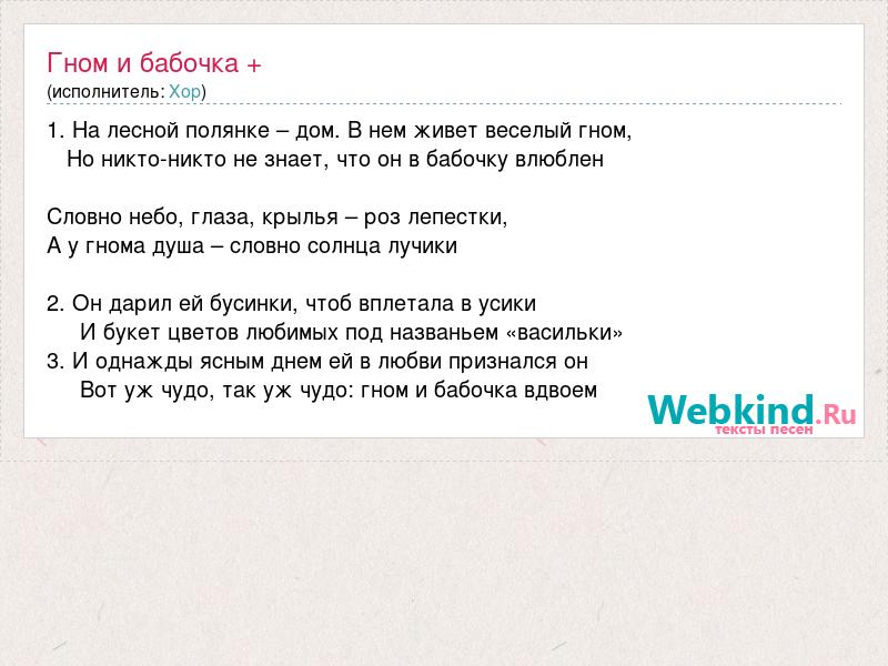 А как ты думаешь, о чем песня "Гном и бабочка +" ?