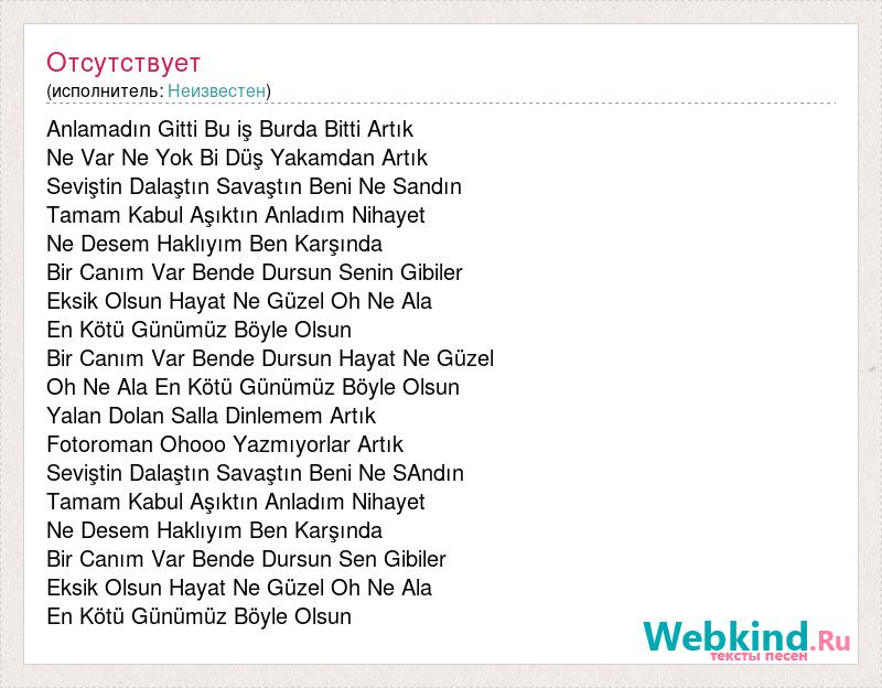 А как ты думаешь, о чем песня "Anlamadın Gitti Bu iş Burda Bitti Artık" ?