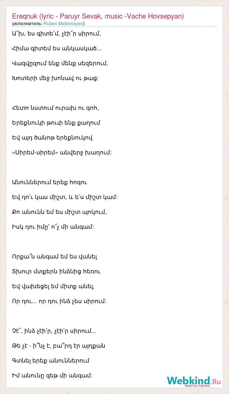 Ereqnuk (lyric - Paruyr Sevak, music -Vache Hovsepyan)