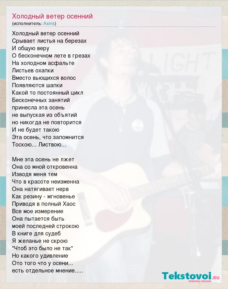 А как ты думаешь, о чем песня "Холодный ветер осенний" ?