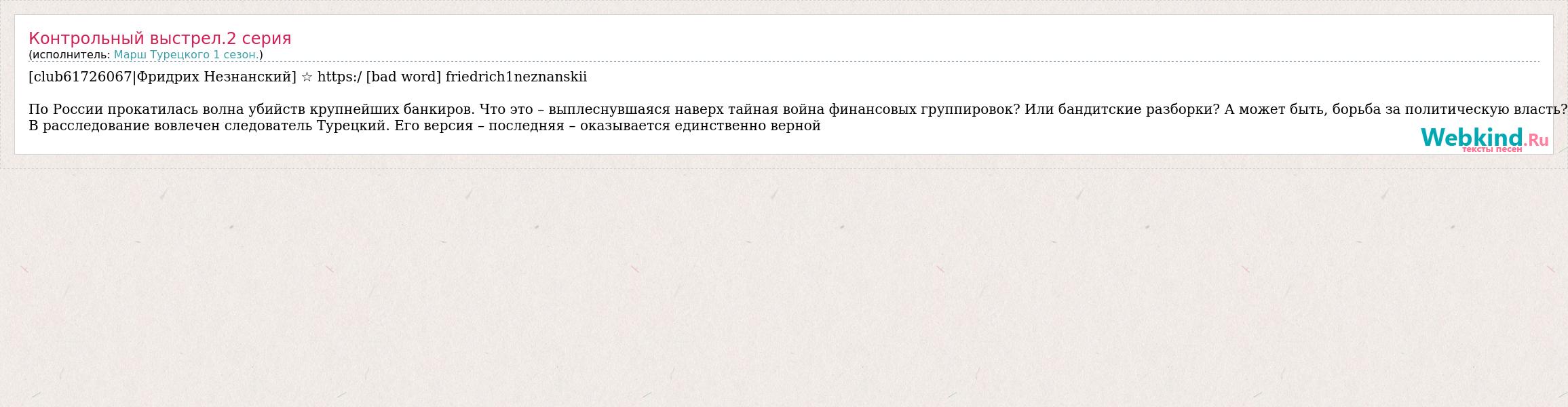 [club61726067|Фридрих Незнанский] ☆ https:/ [bad word] friedrich1neznanskii По России прокатилась волна убийств крупнейших банкиров. Что это – выплеснувшаяся наверх тайная война финансовых группировок? Или бандитские разборки? А может быть, борьба за политическую власть? В расследование вовлечен следователь Турецкий. Его версия – последняя – оказывается единственно верной