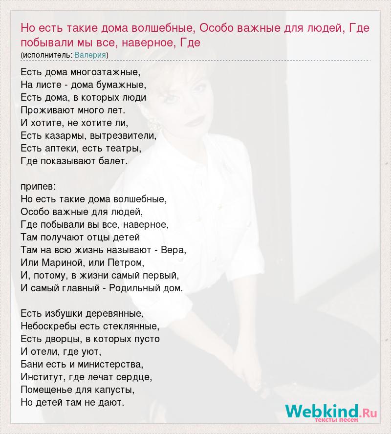 Главная→Исполнители→Валерия→Но есть такие дома волшебные, Особо важные для людей, Где побывали мы все, на