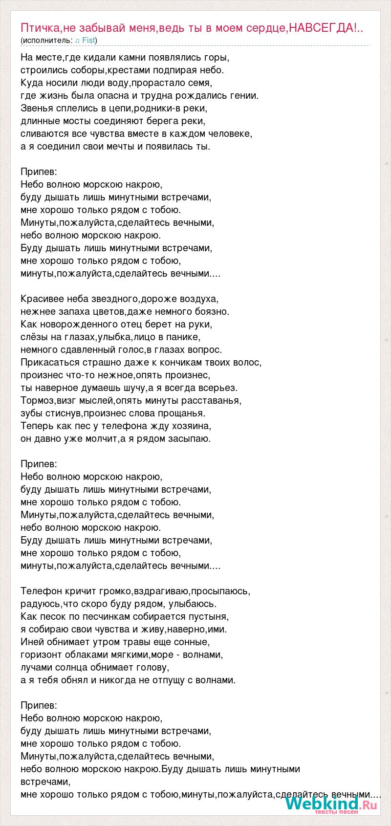 Главная→Исполнители→♫ Fist→Птичка,не забывай меня,ведь ты в моем сердце,НАВСЕГДА!.. Небо волною морскою нак