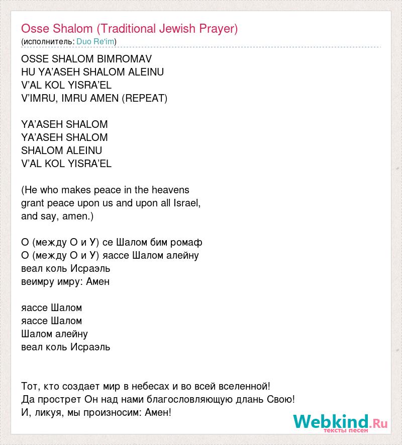 А как ты думаешь, о чем песня "Osse Shalom (Traditional Jewish Prayer)" ?
