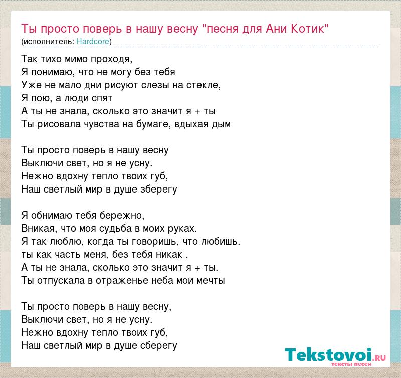 Ты просто поверь в нашу весну "песня для Ани Котик"