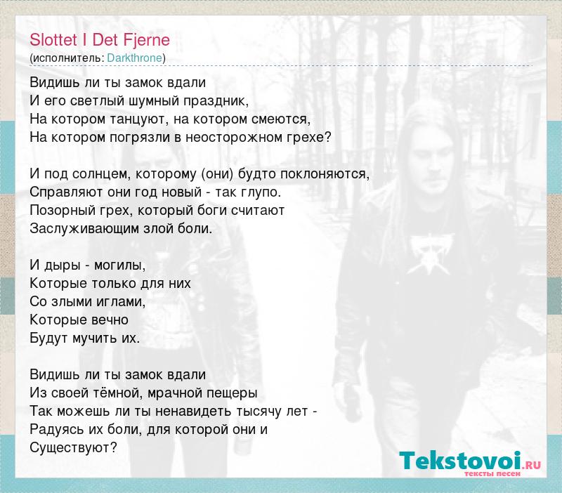 Видишь ли ты замок вдали И его светлый шумный праздник, На котором танцуют, на котором смеются, На котором погрязли в неосторожном грехе? И под солнцем, которому (они) будто поклоняются, Справляют они год новый - так глупо. Позорный грех, который боги считают Заслуживающим злой боли. И дыры - могилы, Которые только для них Со злыми иглами, Которые вечно Будут мучить их. Видишь ли ты замок вдали Из своей тёмной, мрачной пещеры Так можешь ли ты ненавидеть тысячу лет - Радуясь их боли, для которой они и Существуют?
