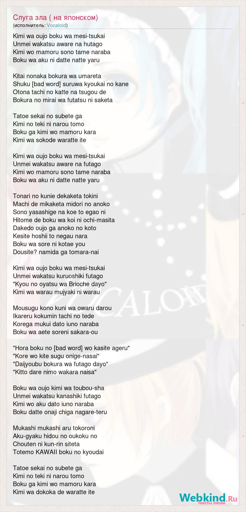 А как ты думаешь, о чем песня "Слуга зла ( на японском)" ?