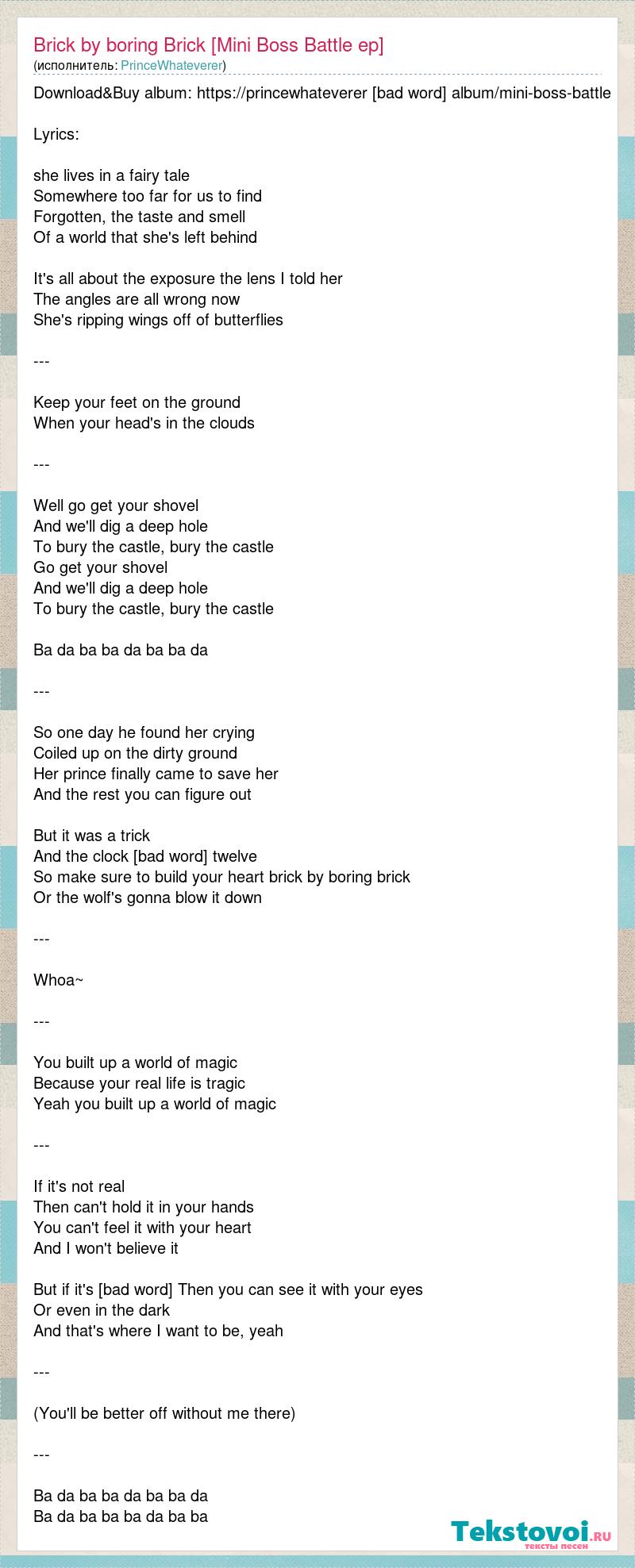 А как ты думаешь, о чем песня "Brick by boring Brick [Mini Boss Battle ep]" ?