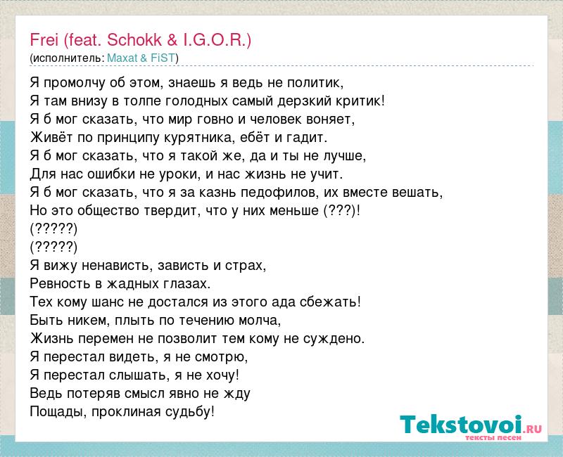 А как ты думаешь, о чем песня "Frei (feat. Schokk & I.G.O.R.)" ?