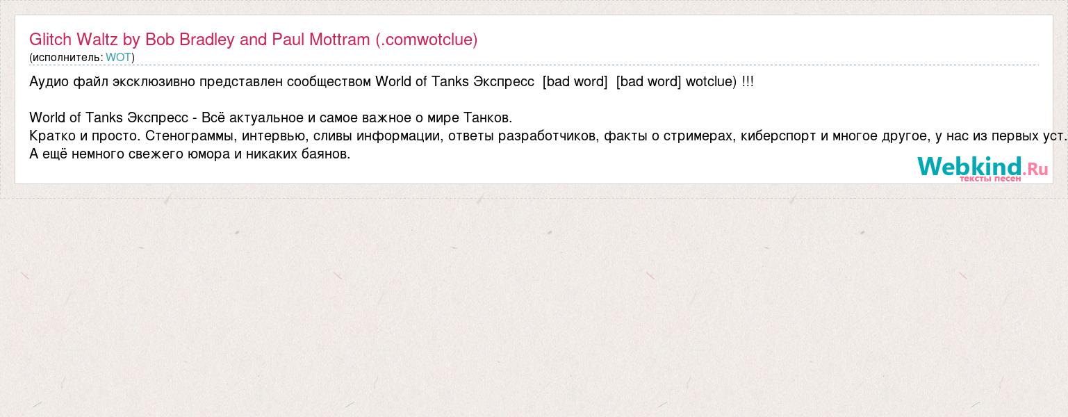 А как ты думаешь, о чем песня "Glitch Waltz by Bob Bradley and Paul Mottram (.comwotclue)" ?