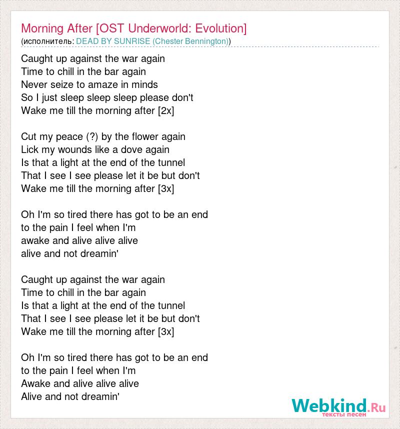 А как ты думаешь, о чем песня "Morning After [OST Underworld: Evolution]" ?