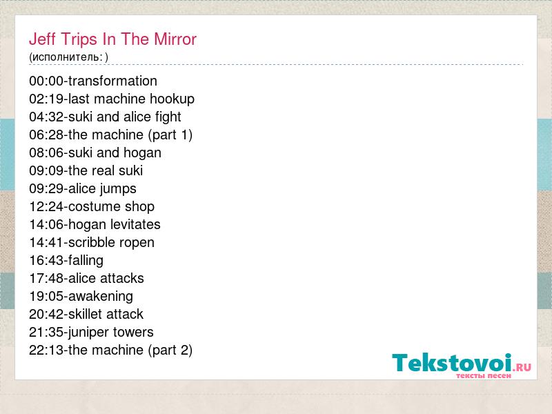 А как ты думаешь, о чем песня "Jeff Trips In The Mirror" ?