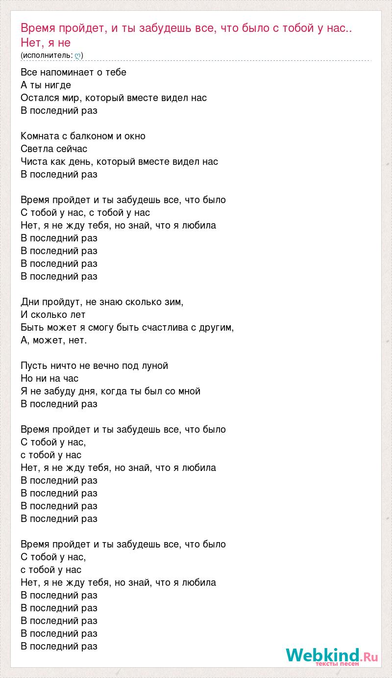 Время пройдет, и ты забудешь все, что было с тобой у нас.. Нет, я не