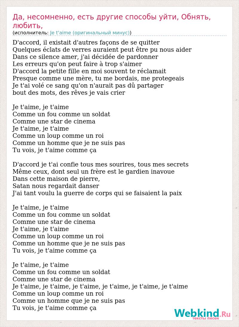 Главная→Исполнители→Je t'aime (оригинальный минус)→Да, несомненно, есть другие способы уйти, Обнять, любить,