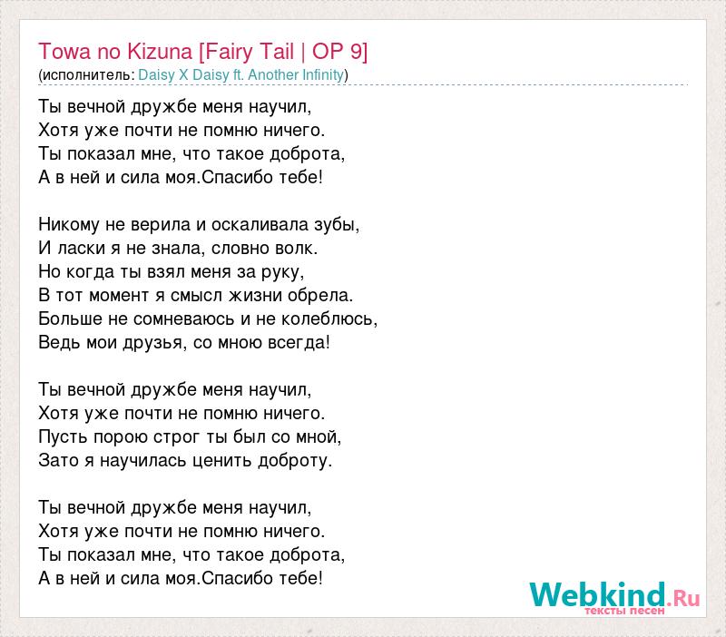 А как ты думаешь, о чем песня "Towa no Kizuna [Fairy Tail | OP 9]" ?