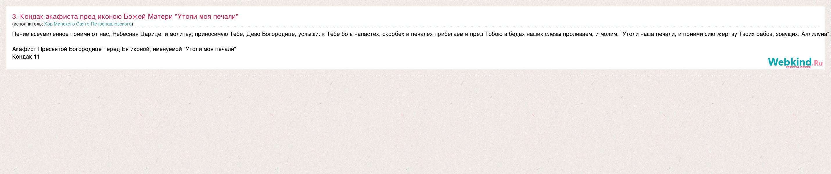 Главная→Исполнители→Хор Минского Свято-Петропавловского собора (рег. Ирина Денисова)→3. Кондак акафиста пред иконою Божей Матери "Утоли моя печали"