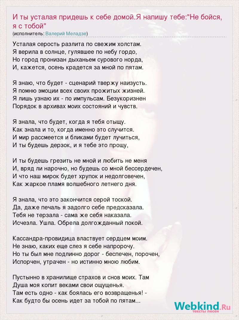 И ты усталая придешь к себе домой.Я напишу тебе:"Не бойся, я с тобой"