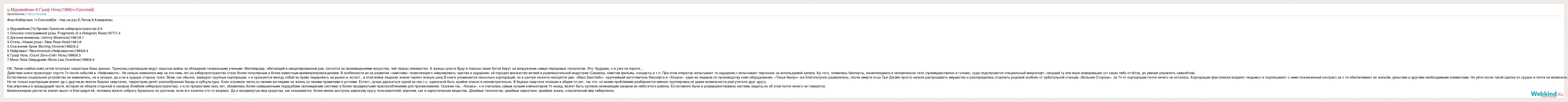 ФантКиберпанк /ч-СоколовЕвг. /пер.на рус:Е.Летов,А.Комаринец ц Муравейник(7л)/Sprawl=Трилогия киберпространства 8.9 1.Осколки голограммной розы /Fragments of a Hologram Rose(1977)7.4 2.Джонни-мнемоник /Johnny Mnemonic(1981)8.1 3.Отель «Новая роза» /New Rose Hotel(1981)8 4.Сожжение Хром /Burning Chrome(1982)8.2 5.Нейромант /Neuromancer=Нейромантик(1984)8.4 6.Граф Ноль /Count Zero=Счёт Ноль(1986)8.3 7.Мона Лиза Овердрайв /Mona Lisa Overdrive(1988)8.4 О6: Лихие ковбои комп.сетей потрошат секретные базы данных. Транснац.корпорации ведут скрытые войны за обладание гениальными учеными. Миллиардер, обитающий в смоделированном рае, охотится за произведениями искусства, чей творец неизвестен. А жрецы культа Вуду в поисках своих богов берут на вооружение самые передовые технологии. Это -будущее, к-е уже на пороге... Действие книги происходит спустя 7л после событий в «Нейроманте». Не сильно изменился мир за эти семь лет,но киберпространство стало более популярным и более известным времяпрепровождением. В особенности из-за развития «симстима» позволяющего симулировать чувства и ощущения, кй породил множество ветвей в развлекательной индустрии (Сериалы, симстим фильмы, концерты и т.п. При этом оператор испытывает те ощущения,ч испытывает персонаж на используемой записи. Кр.того, появились биопорты, вживляющиеся в человеческое тело (преимущественно в голове), куда подключается специальный микрософт, несущий ту или иную информацию (от каких либо отчётов, до умения управлять самолётом). Естественно социальное устройство не изменилось, не в лучшую, да и не в худшую сторону тоже. Всем, как обычно, заведуют крупные корпорации, к-е сражаются между собой за право лидировать на рынке и, естест., в этой войне людские жизни теряют всякую цену.В книге упоминается несколько корпораций, но в центре сюжета находятся две: «Масс Биоплабс» -крупнейший изготовитель биософта и «Хосака» -один из лидеров по производству комп.оборудования. «Тесье-Ашпун»-же благополучно развалилось, после смерти отца Три-Джэйн просто начала распродавать имущество и распорядилась отделить родовой особняк от орбитальной станции «Вольная Сторона», за 7л от корпорации почти ничего не осталось. Корпорации фактически владеют людьми,к-е подписывают с ними пожизненный контракт,за ч те обеспечивают их жильём, деньгами и другими необходимыми элементами. Но уйти после такой сделки оч.трудно и почти не возможно. Но не только корпорации воюют др.с другом,во многих бедных кварталах, территории делят разнообразные банды и субкультуры. Коих огромное число,со своими взглядами на жизнь,со своими правилами и устоями. Естест.,лучше держаться одной из них,т.к. одиночкой быть крайне опасно и неосмотрительно. В бедных квартала полиции в общем-то нет, так что -со всеми проблемами разбираются именно группировки,не давая возможности разгуляться друг другу. Как,впрочем,и в предыдущей части, история не обошла стороной и хакеров (Ковбоев киберпространства), к-е,по прошествию неск.лет, обзавелись более совершенными ледорубами (взломщиками система) и более продвинутыми приспособлениями для проникновения. Скажем так, «Хосака», к-я считалась самым лучшим компьютером 7л назад, может быть куплена начинающим хакером из небогатого района. Естественно были и усовершенствованы системы защиты,но об этом почти ничего не говорится. Биоинженерия достигла значит.высот и благодаря её, человека можно собра