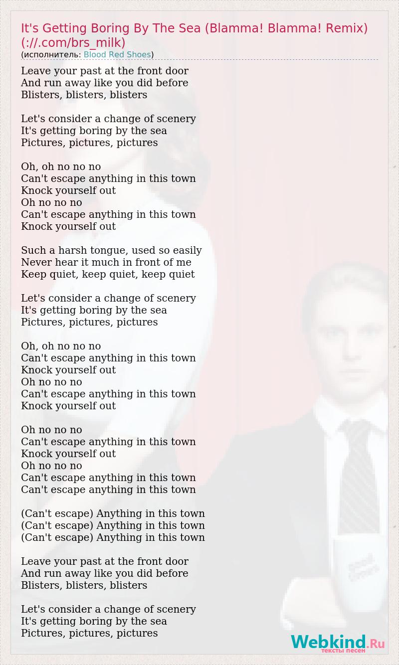 Leave your past at the front door And run away like you did before Blisters, blisters, blisters Let's consider a change of scenery It's getting boring by the sea Pictures, pictures, pictures Oh, oh no no no Can't escape anything in this town Knock yourself out Oh no no no Can't escape anything in this town Knock yourself out Such a harsh tongue, used so easily Never hear it much in front of me Keep quiet, keep quiet, keep quiet Let's consider a change of scenery It's getting boring by the sea Pictures, pictures, pictures Oh, oh no no no Can't escape anything in this town Knock yourself out Oh no no no Can't escape anything in this town Knock yourself out Oh no no no Can't escape anything in this town Knock yourself out Oh no no no Can't escape anything in this town Can't escape anything in this town (Can't escape) Anything in this town (Can't escape) Anything in this town (Can't escape) Anything in this town Leave your past at the front door And run away like you did before Blisters, blisters, blisters Let's consider a change of scenery It's getting boring by the sea Pictures, pictures, pictures