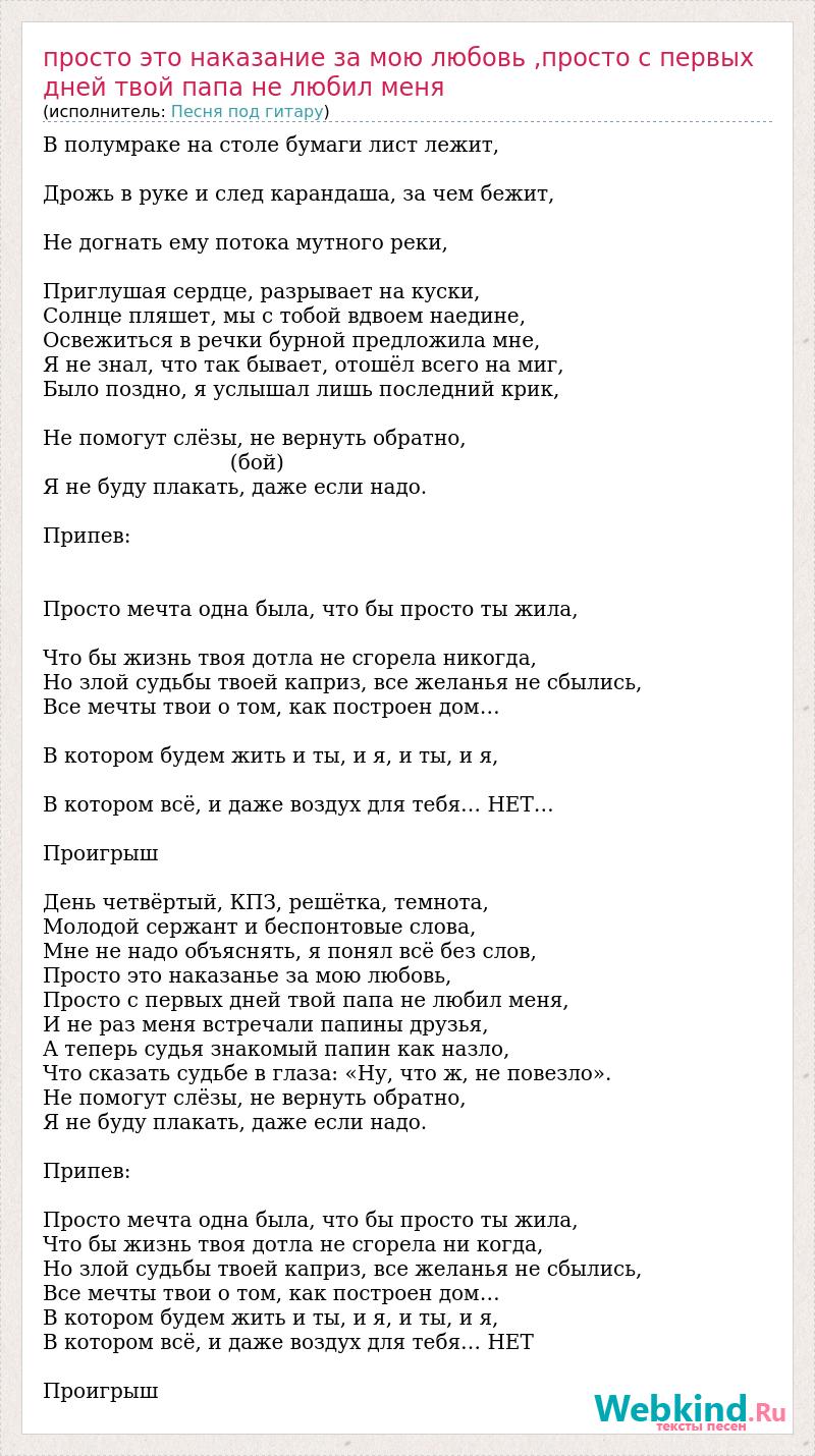 Главная→Исполнители→Песня под гитару→Просто это наказание за мою любовь ,просто с первых дней твой папа не любил м
