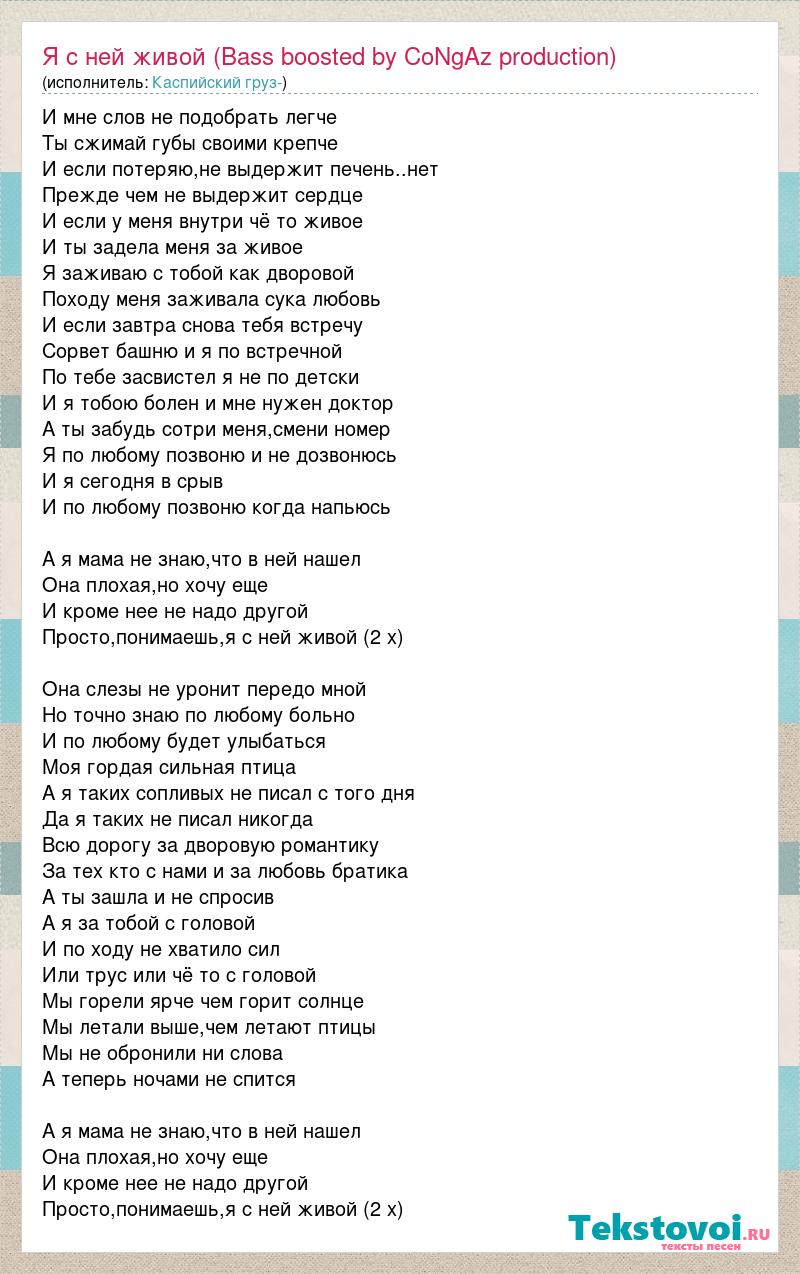 И мне слов не подобрать легче Ты сжимай губы своими крепче И если потеряю,не выдержит печень..нет Прежде чем не выдержит сердце И если у меня внутри чё то живое И ты задела меня за живое Я заживаю с тобой как дворовой Походу меня заживала сука любовь И если завтра снова тебя встречу Сорвет башню и я по встречной По тебе засвистел я не по детски И я тобою болен и мне нужен доктор А ты забудь сотри меня,смени номер Я по любому позвоню и не дозвонюсь И я сегодня в срыв И по любому позвоню когда напьюсь А я мама не знаю,что в ней нашел Она плохая,но хочу еще И кроме нее не надо другой Просто,понимаешь,я с ней живой (2 х) Она слезы не уронит передо мной Но точно знаю по любому больно И по любому будет улыбаться Моя гордая сильная птица А я таких сопливых не писал с того дня Да я таких не писал никогда Всю дорогу за дворовую романтику За тех кто с нами и за любовь братика А ты зашла и не спросив А я за тобой с головой И по ходу не хватило сил Или трус или чё то с головой Мы горели ярче чем горит солнце Мы летали выше,чем летают птицы Мы не обронили ни слова А теперь ночами не спится А я мама не знаю,что в ней нашел Она плохая,но хочу еще И кроме нее не надо другой Просто,понимаешь,я с ней живой (2 х)