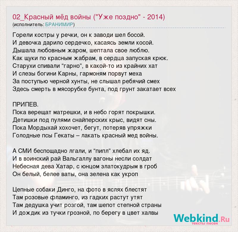 А как ты думаешь, о чем песня "02_Красный мёд войны ("Уже поздно" - 2014)" ?