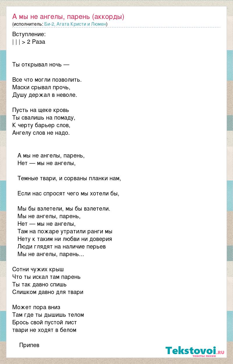 А как ты думаешь, о чем песня "А мы не ангелы, парень (аккорды)" ?